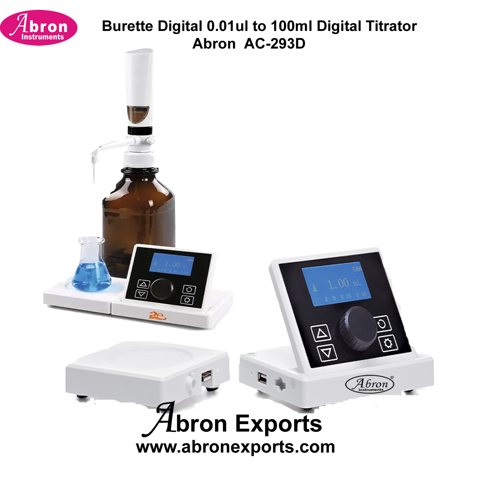 Digital Burette electronic 50mlx0.01ml Tarson Bottle top dispenser with 1000ml bottle Abron AC-393TR50