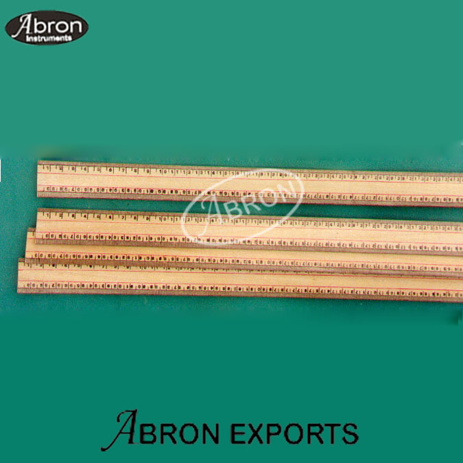 wooden vertical reading up and down mm division at marked