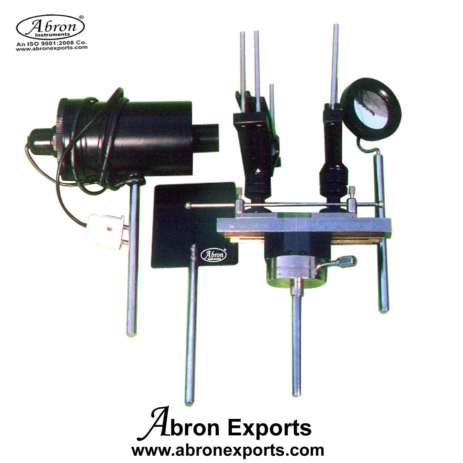 (ii) Optical Slit :With fine machined cross slit, one surface white and the other optical black, with 3" steel CP stem. (iii) Nodal Upright : Consists of a combination of Single and Double lens holders on a mounting rotating along the vertical axis. The combination lens holder are adjustable in height and the single and twin lens holders can either be moved together by rack and pinion or relative to each other by sliding. These motions are read by individual pointers on a mm scale. The whole mount can rotate along its vertical axis and the degree of rotation read on a circular scale with 3" steel CP stem.